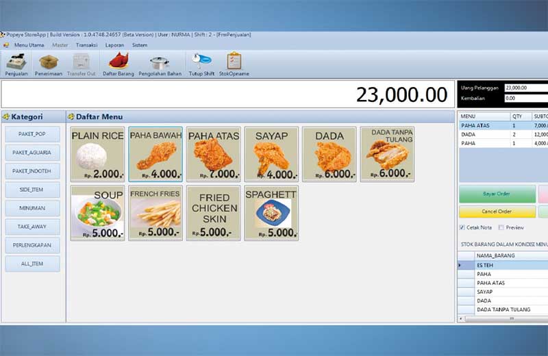 System yang dapat digunakan untuk dalam membantu pencatatan penjualan (Point of Sale) pada beberapa jenis usaha retail. Sistem akan dapat memberikan laporan penjualan dan pembelian operasional dalam suatu periode tertentu hingga pelaporan data stock barang. Contoh :