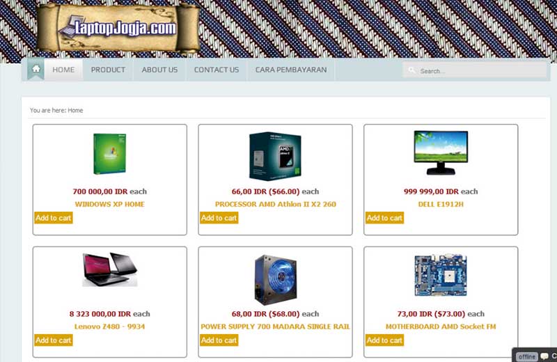 Situs penjualan online atau E-COMMERCE dengan fungsionalitas belanja online, artikel-artikel dengan tips menarik, dan online support Yahoo Messanger untuk teknisi dan marketing. Content Management System yang mendukung pengelolaan situs. Website ini dapat juga membantu client yang belum memiliki store secara riil, penjualan juga dapat dimulai dari tempat tinggal sendiri sehingga anda dapat menampilkan jenis-jenis produk yang dimiliki. Dengan update data yang cepat maka dapat meningkatkan pelayanan penjualan produk anda ke konsumen. Contoh :