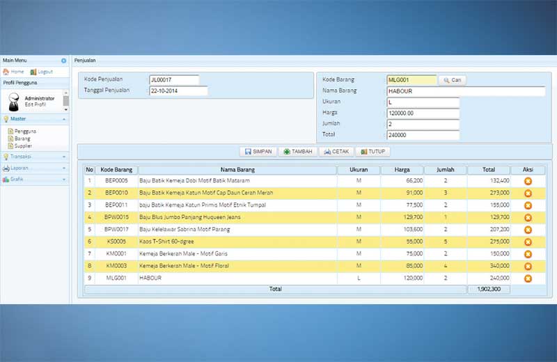 Omah IT - Distro & Butik System merupakan solusi bisnis retail penjualan produk fasion, dengan kemampuan sistem dalam menangani pengolahan data transaksi hingga pelaporan transaksi yang cepat dan handal akan sangat berpengaruh pada perkembangan performa usaha anda. Keunggulan Systemnya yaitu
